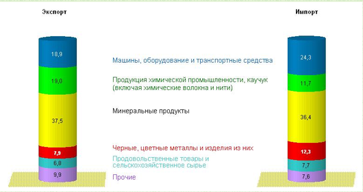 Рис. 2.2 Основные статьи экспорта и импорта Республики Беларусь в 2008 г. [13]