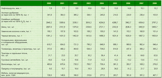 Так, в январе-июле 2009 года экспорт белорусских нефтепродуктов достиг 9,126 млн. т, или 100,4% к уровню аналогичного периода прошлого года. Для сравнения, в январе этот показатель был 90,8% к первому месяцу 2008 года. По итогам семи месяцев темпы роста экспорта калийных удобрений составили 28,3% против 14,9% в январе. Объем поставок на внешний рынок азотных удобрений достиг 93,4 тыс. т, или 163,8% к январю-июлю 2008 года.