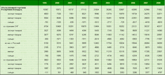 В январе-сентябре текущего года по сравнению с аналогичным периодом 2008 года экспорт товаров Беларуси сократился на 43,3% и составил $15 млрд. Основные причины снижения объемов торговли очевидны: это ухудшение конъюнктуры мирового рынка, спад деловой активности из-за продолжающегося финансово-экономического кризиса и, как следствие, резкое падение платежеспособного спроса и цен на основные виды белоруской экспортной продукции.