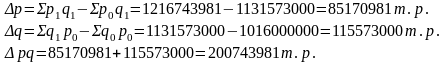 Из-за изменения физического объема стоимость изменилась на 115573000т.р.