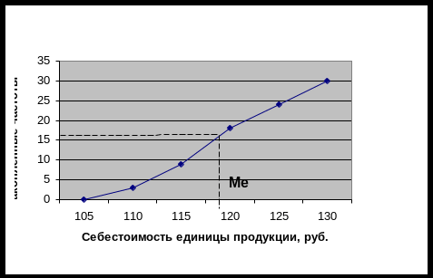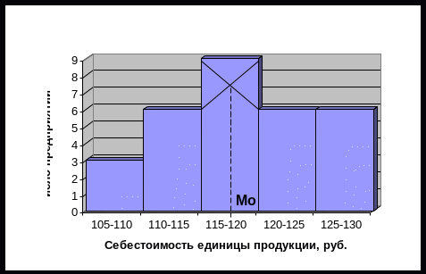Значит, в изучаемой совокупности 50% предприятий имеют себестоимость единицы продукции менее 118 руб., а остальные 50% имеют себестоимость единицы продукции более 118 руб.