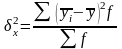 Дисперсия признака представляет собой средний квадрат отклонения вариантов от их средней величины. Так как у нас имеются сгруппированные данные, то расчеты будем производить по следующей формуле: