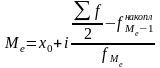 Медиана(Ме) - это численное значение признака у той единицы совокупности, которая находится в середине ранжированного ряда (построенного в порядке возрастания, либо убывания значения изучаемого признака). Медиану иногда называют серединной вариантой, т.к. она делит совокупность на две равные части.