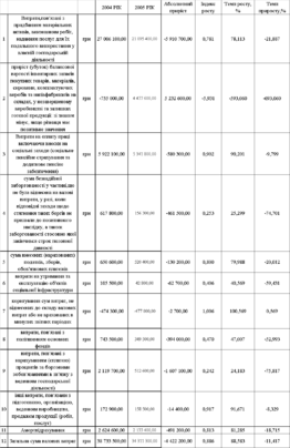 Таблиця 3.2 - Структура та динаміка формування валових витрат підприємства в 2004 -2005 роках