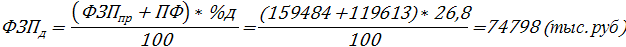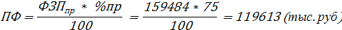 ФЗПпр = Рсд * Nг = 613,4 * 260000/1000 = 159484 (тыс. руб)