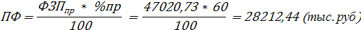 ФЗПпр = Ф * Тст * Рв = 1850 * 21,892 * 1161 / 1000 = 47020,73 (тыс. руб)