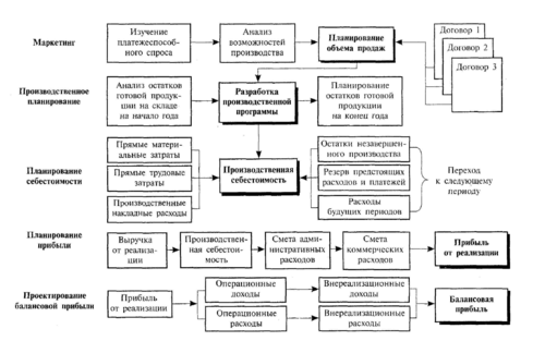 На основе бюджетирования разрабатываются компьютерно-ориентированные модели финансового планирования прибыли. Алгоритм планирования прибыли основан на поэтапной подготовке исходных данных для финансового планирования. Здесь осуществляется взаимосвязь организационного, производственного и финансового планирования:
