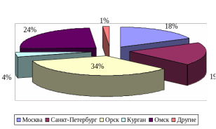 На рисунке 1 представим диаграмму распределения поставщиков предприятия по географическому признаку в 2009 году.