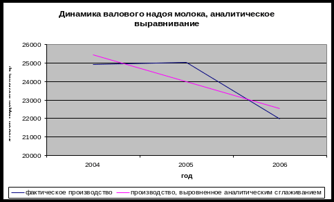 Прогноз валового надоя молока на 2008 г. был рассчитан в Microsoft Excel на основании данных аналитического выравнивания и составляет 21274,11, величина достоверности аппроксимации равна 0,7131