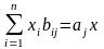 поскольку согласно условию в x1 единицах продукта F1 согласно матрице питательности содержится a11x1 единиц компоненты N1; к этому количеству добавляется порция а12x2 вещества N1 из х2 единиц продукта F2 и т.д. Аналогично можно определить и количество всех остальных веществ Ni в составляемом рационе (х1,..., хn).