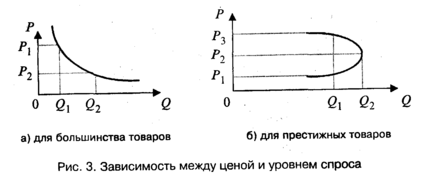 Рис. 1. Зависимость между ценой и уровнем спроса
