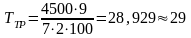 T1= (4500*1,18*1,2) /7*1=910 (дн.)