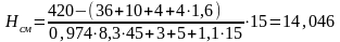 Нсм= [ (420- (36+10+4+4*1,5) / (0,944*8,3*55+30)] *20=15,79 (м3)