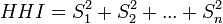 где S1,S2 — выраженные в процентах доли продаж фирм в отрасли, определяемые как отношение объёма продаж фирмы к объёму всех продаж отрасли.