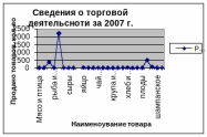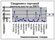 На рис. 4 представлено графически сведение о торговой деятельности за 2007 г в зависимости наименования товара от проданного товара.