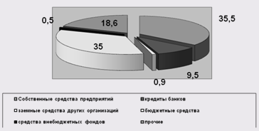 Рис. 3. Инвестиции в основной капитал по источникам финансирования в 2010 году, в %