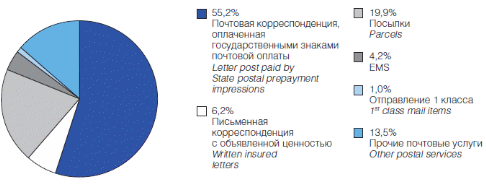 Рисунок 2.2 Структура доходов от оказания почтовых услуг в 2009 году