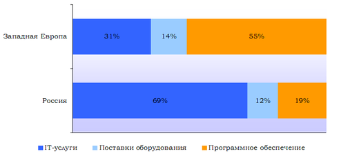 Рисунок 1 - Структура рынка IT в России и Западной Европе в 2006 г.