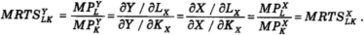 где MRTSXLK - предельная норма технической замены трудом капитала в производстве блага X, а MRTSYLK - предельная норма технической замены трудом капитала в производстве блага Y.