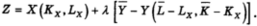 Задача заключается в том, чтобы максимизировать количество блага Х при данном уровне выпуска блага Y, скажем, и располагаемом количестве капитала и труда (K и L). Нижние индексы X и Y указывают продукцию, на производство которой направлен соответствующий ресурс. Таким образом, имеются ресурсные ограничения: