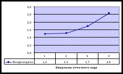 Расчет фондоотдачи осуществим по кварталам отчетного года. При поквартальных расчетах фондоотдачи средняя балансовая стоимость основных фондов будем рассчитывать упрощенно по формуле простой средней арифметической с использованием данных на начало и конец рассматриваемого квартала. Полученные результаты занесем в таблицу 11 и изобразим в виде графика (рис. 7).