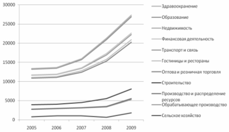 | Гостиницы и рестораны | 188 | 199 | 394 | 479 | 633 |