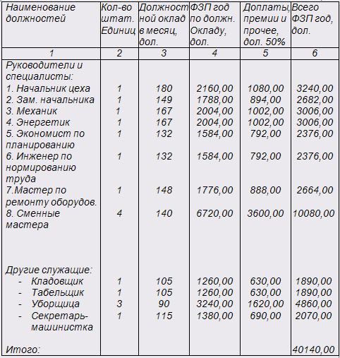 4. Расчёт фонда заработной платы служащих и МОП.