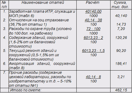 Для составления калькуляции рассчитываются сметы: "Расходы на содержание и эксплуатацию оборудования" и "Цеховые расходы", которые полной суммой включаются в калькуляцию себестоимости продукции.