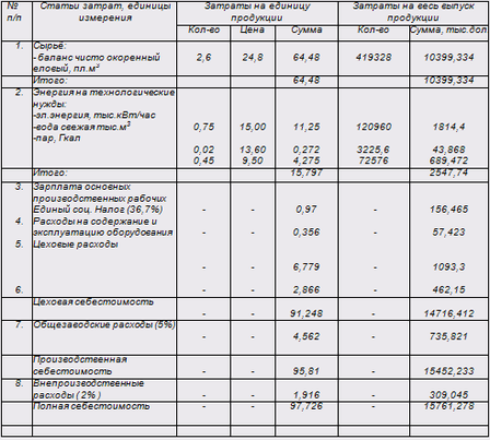 1. Определение себестоимости продукции планируемого цеха.