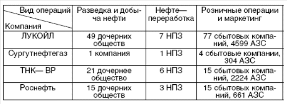 Все перечисленные предприятия — вертикально— интегрированные нефтяные компании (ВИНК), осуществляющие весь комплекс операций «от скважины до бензоколонки».