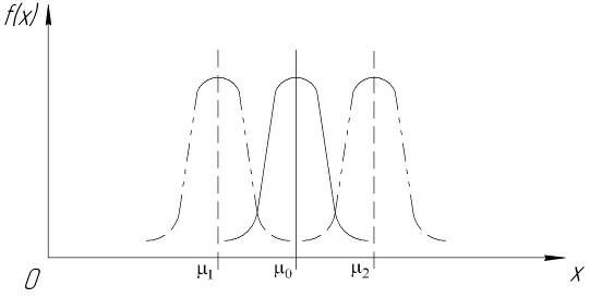Рис. 2. Кривые распределения нормального распределения при изменении центра рассеивания