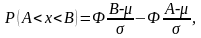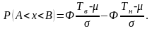 , подчиненной нормальному закону с параметрами μ, σ, на участок от А до В. Таким участком может быть, например, поле допуска от верхнего значения