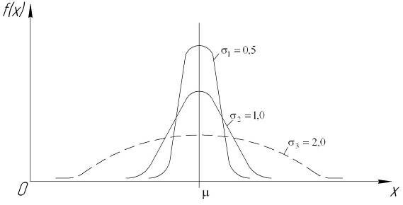 . Смысл этих параметров состоит в следующем. Значением определяется центр рассеивания – если изменять центр рассеивания, кривая распределения будет смещаться вдоль оси абсцисс, не изменяя своей формы (рис. 2). Таким образом, значением