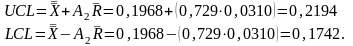 | Центральная линия | UCL и LCL | Центральная линия | UCL и LCL | |