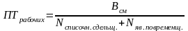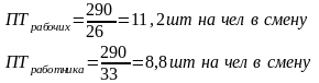 Производительность труда на одного рабочего и одного работника в смену определяется по формуле: