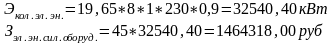 Затраты энергии на силовое оборудование определяются по формуле: