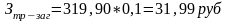 Транспортно-заготовительные расходы принимаются 5-15% от стоимости сырьевых затрат. Принимаем 10%.