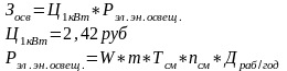 Затраты на освещение помещений исчисляются из расхода электроэнергии на освещение и цены за единицу измерения электроэнергии на освещение.