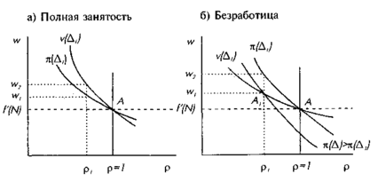 Рис. 6.10. Неявные контракты с полной занятостью и с безработицей