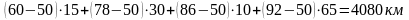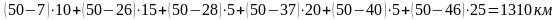 Вариант 1. Если бензоколонку поставить в середине шоссе, т.е. на 50-ом километре (центр диапазона изменения признака), то пробеги с учетом числа ездок составят: