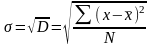 Однако, вследствие суммирования квадратов отклонений дисперсия дает искаженное представление об отклонениях, поэтому ее на основе рассчитывают среднее квадратическое отклонение, которое показывает, на сколько в среднем отклоняются конкретные варианты признака от их среднего значения. Вычисляется путем извлечения квадратного корня из дисперсии: