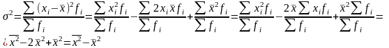 Таким образом, дисперсия равна разности средней из квадратов вариант и квадрата средней из вариант совокупности: