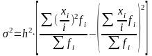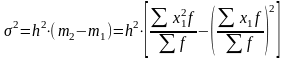 Используя свойства дисперсии и сначала уменьшив все варианты совокупности на величину А, а затем разделив на величину интервала h, получим формулу вычисления дисперсии в вариационных рядах с равными интервалами способом моментов: