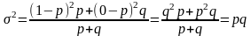 Если значения 1 и 0 встречаются одинаково часто, т.е. p=q, дисперсия достигает своего максимума pq=0,25.