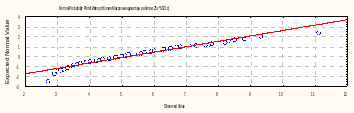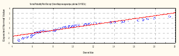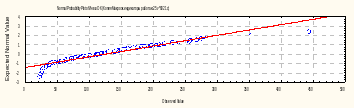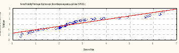 Проверим выборки, используемые для построения модели, на нормальность распределения. Вид полученных диаграмм рассеивания (табл. 8 – 13) позволяет сделать вывод о том, что выборки не близки к нормальной, однако гистограммы (табл. 14 – 19) и графики функций распределения (табл. 20 – 25) свидетельствуют об обратном.