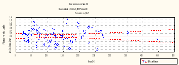 Проверка построенной модели на выполнение условий регрессионного анализа Гаусса-Маркова (табл. 28 – 35) позволяет установить, что выполняются предпосылки № 1, 4, 5, однако нарушаются условия № 2, 3.
