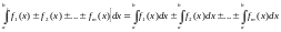 Визначений інтеграл від алгебраїчної суми скінченної кількості функцій дорівнює такій самій алгебраїчній сумі інтегралів від кожного доданку, тобто
