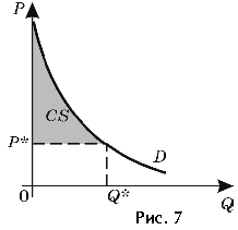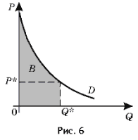 приблизно дорівнює площі фігури B (малюнок 6), що, як відомо, при малих збільшеннях аргументу Q дорівнює певному інтегралу від зворотної функції попиту при зміні аргументу від 0 до Q*, тобто в підсумку одержимо, що