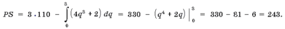Завдання 4. Відомо, що крива пропозиції деякого товару має вигляд p = 4q3 + 2, а рівновага на ринку даного товару досягається при обсязі продажів Q* = 3. Визначите додаткову вигоду виробника при продажі такої кількості продукції.