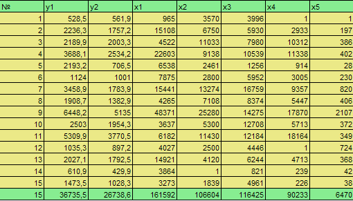 | № | Y2p | x1 | u | z | (u - Uc) ^2 | (z - Zc) ^2 | 1 * 2 | L2 |